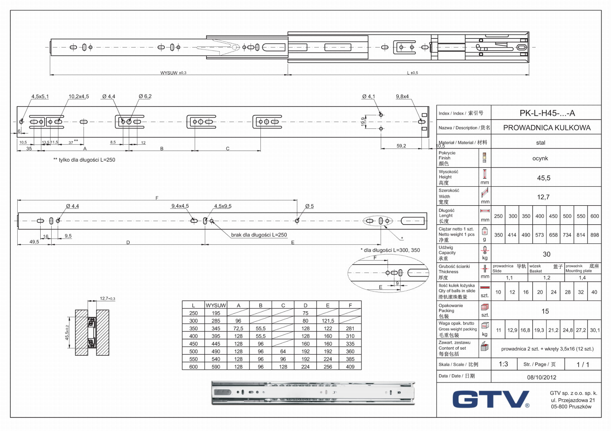 Prowadnica kulkowa Versalite GTV to jeden z podstawowych akcesoriów meblowych, który umożliwia sprawne i komfortowe otwieranie szuflad. Produkt ten posiada pełny wysuw, który gwarantuje całkowitą wygodę użytkowania i swobodny dostęp do krańcowych części mebla. Dodatkowo został on wyposażony w opcję reset oraz stworzony z wysoce odpornej stali. Niezwykle praktycznym rozwiązaniem jest nowy typ mechanizmu spowalniającego, który dodatkowo wzbogacony jest w funkcję cichego domknięcia. Ponadto dopuszczalne obciążenie produktu, o teleskopowej budowie prowadnika, wynosi 30 kg, a zatem występuje małe prawdopodobieństwo jego uszkodzenia. Prowadnica kulkowa Versalite od uznanego producenta GTV to niezwykle solidne rozwiązanie, które będzie odznaczać się bezawaryjnym działaniem przez wiele lat.