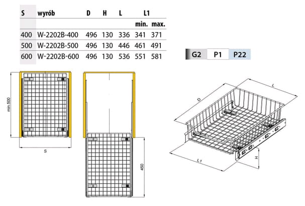 SZUFLADA CARGO GÓRNA W2202B-600 CHROM