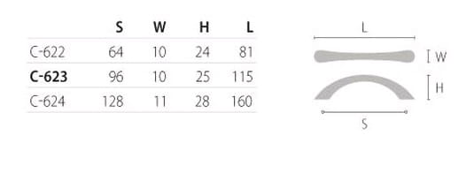 Uchwyt ARCO przewężany zn Lo=96 mm. Dostępne również w innych rozstawach (C-622,C-623,C-624) patrz tabelka.