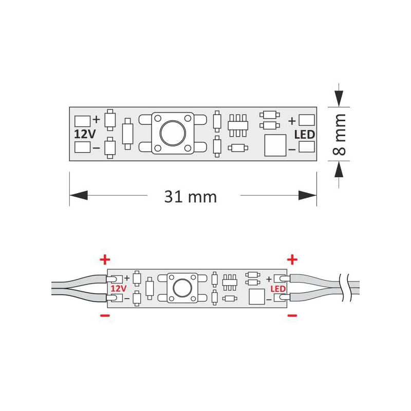 - wymiary: 31 mm x 8 mm (wysokość wyłącznika: 8 mm);