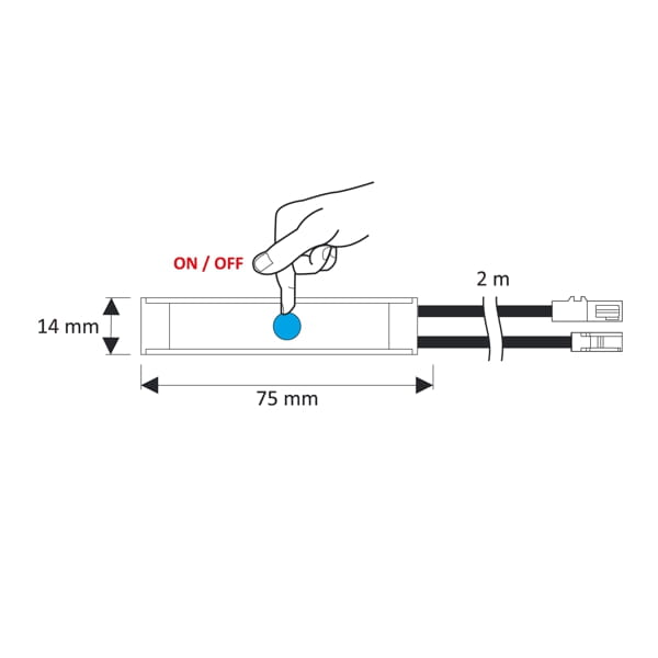 Wyłącznik dotykowy do oświetlania LED z podświetleniem punktu włącz/wyłącz. Kompatybilny z wszystkimi produktami LED w systemie okablowania mini konektor.