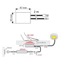 WYŁĄCZNIK do LED zasilany jest napięciem stałym. Zamknięty jest w obudowie izolacyjnej z tworzywa sztucznego w kolorze czarnym.
