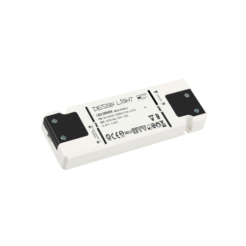 ZASILACZ do LED 15 W zasilany jest napięciem przemiennym o wartości 220–240V ~ 50 Hz. Obniża napięcie wyjściowe do 12V DC. Zamknięty jest w obudowie izolacyjnej z tworzywa sztucznego w kolorze biało-czarnym.
